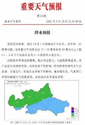 泰山景区宾馆价格情况(来源:某团购平台)9月30日15时,泰安市气象局发布降水预报:受切变线影响,预计10月1日傍晚到2日白天,我市有一次降雨过程,全市累计平均降水量15~30毫米局部40毫米以上,2日下午到夜间北风3~4级阵风6级左右。